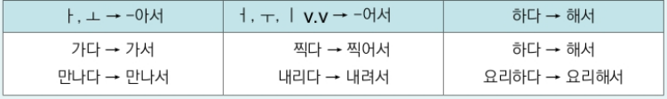 + "아/어서": sử dụng khi hai hành động có mối liên hệ mật thiết với nhau và không có hạn chế về động từ đứng trước.