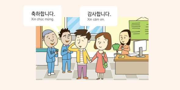 + "축하해요" [chuk-ha-he-yô] Xin chúc mừng