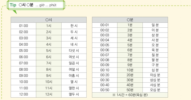 | 1 | 시간 | Thời gian |