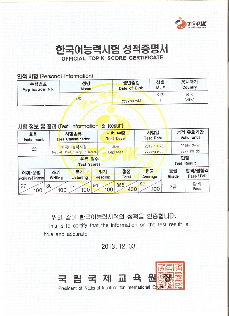 - Hiệu lực của chứng chỉ Topik là 2 năm kể từ ngày cấp chứng chỉ.